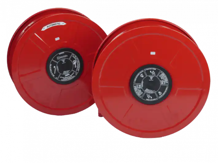 Delta manufactures fixed and swinging fire-hose reels that meet BS EN 671-1. Side plates are protected by polyester powder coating which passes a 240-hour salt-spray test. The reels are available in manual or automatic versions and in 19 mm (¾ in) or 25 mm (1 in) sizes.