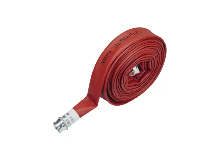 The Nova Ultraflex Type 3 fire hose is a premium, kink‑resistant layflat fire hose engineered for demanding firefighting and emergency environments. It features an all‑nylon construction that maintains flexibility and a smooth, kink‑free shape even at low pressures, helping ensure efficient water flow with minimal friction loss. Designed to withstand harsh conditions, it offers excellent resistance to oil, chemicals, heat, abrasion, weather and ozone, making it suitable for a wide range of challenging scenarios including high‑rise buildings, shipboard emergencies, marine and offshore operations. The hose is manufactured to BS6391 standards and can be supplied in multiple lengths, diameters and colours with British or international couplings for compatibility with existing equipment. It is also virtually maintenance‑free, requiring no drying after use.