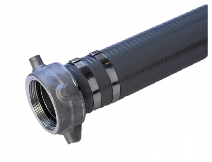 A hard suction hose is a reinforced, rigid or semi-rigid type of suction hose designed to draw water from static or unpressurised sources while maintaining its shape under vacuum. Unlike flexible suction hoses, hard suction hoses are typically made with steel wire reinforcement or heavy-duty PVC spirals, which prevent the hose from collapsing when connected to a pump. They are commonly used by fire and rescue services, industrial operators, and marine teams to ensure a reliable, uninterrupted water supply from tanks, rivers, ponds, or other water sources in emergency or remote operations.