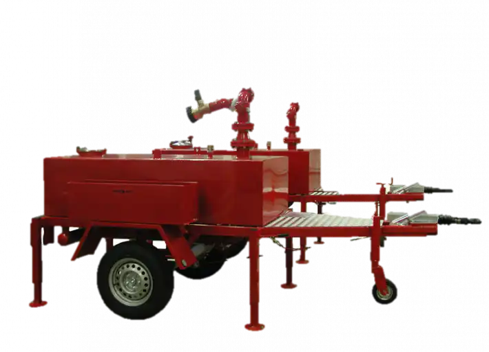 Designed for use in extreme risk situations the DF2000 Foam Trailer Monitor is constructed in corrosion resistant red powder coated carbon steel on a rugged twin axle chassis.