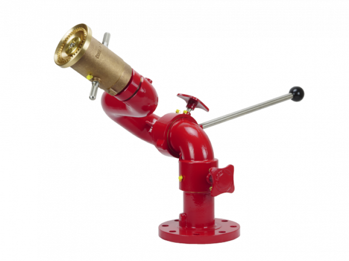 The DF4500 is a fixed-station fire monitor built from corrosion-resistant bronze. It has a 3-inch waterway and delivers flows up to 4,500 LPM (1,190 GPM) for high-capacity water or foam applications.