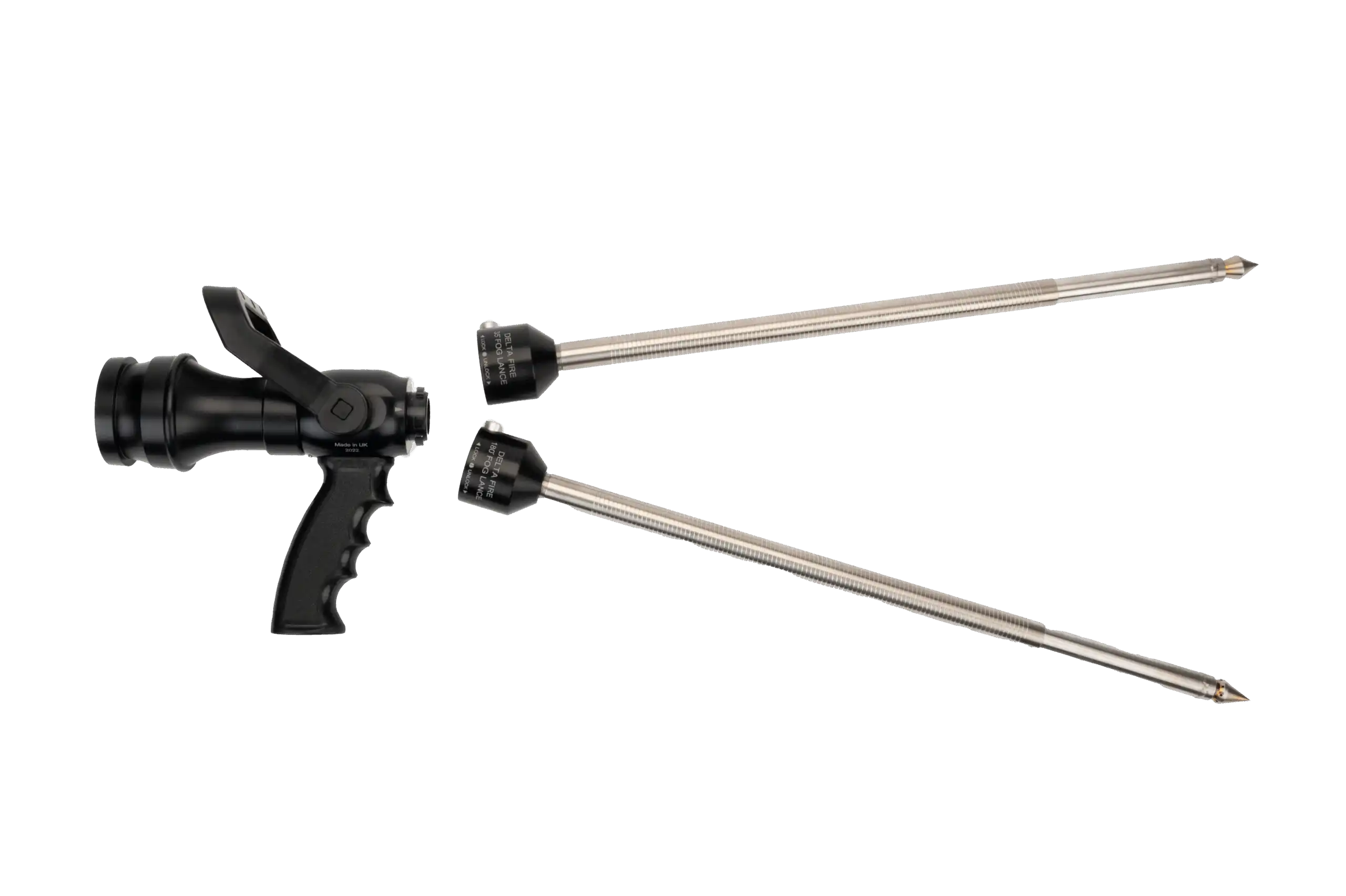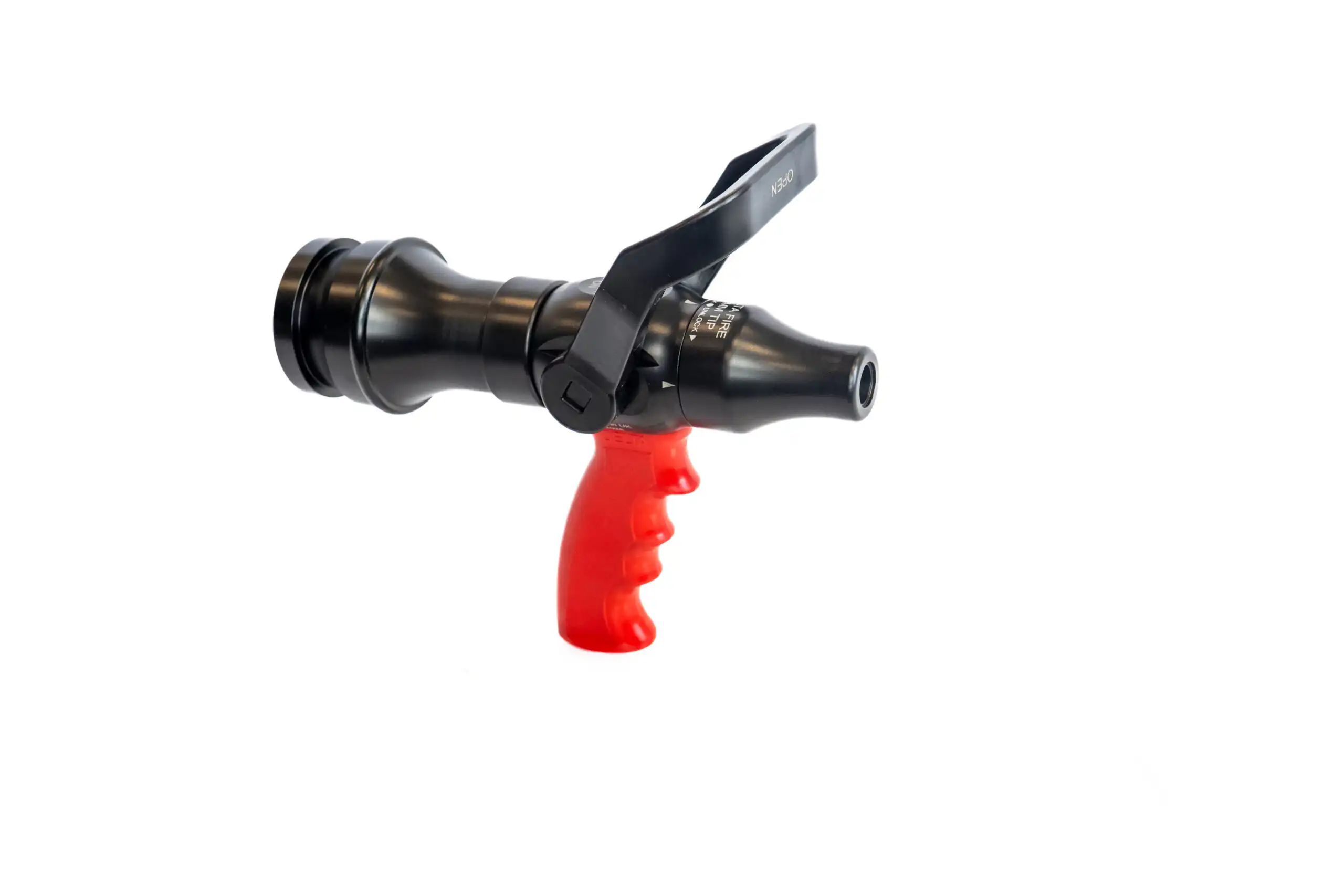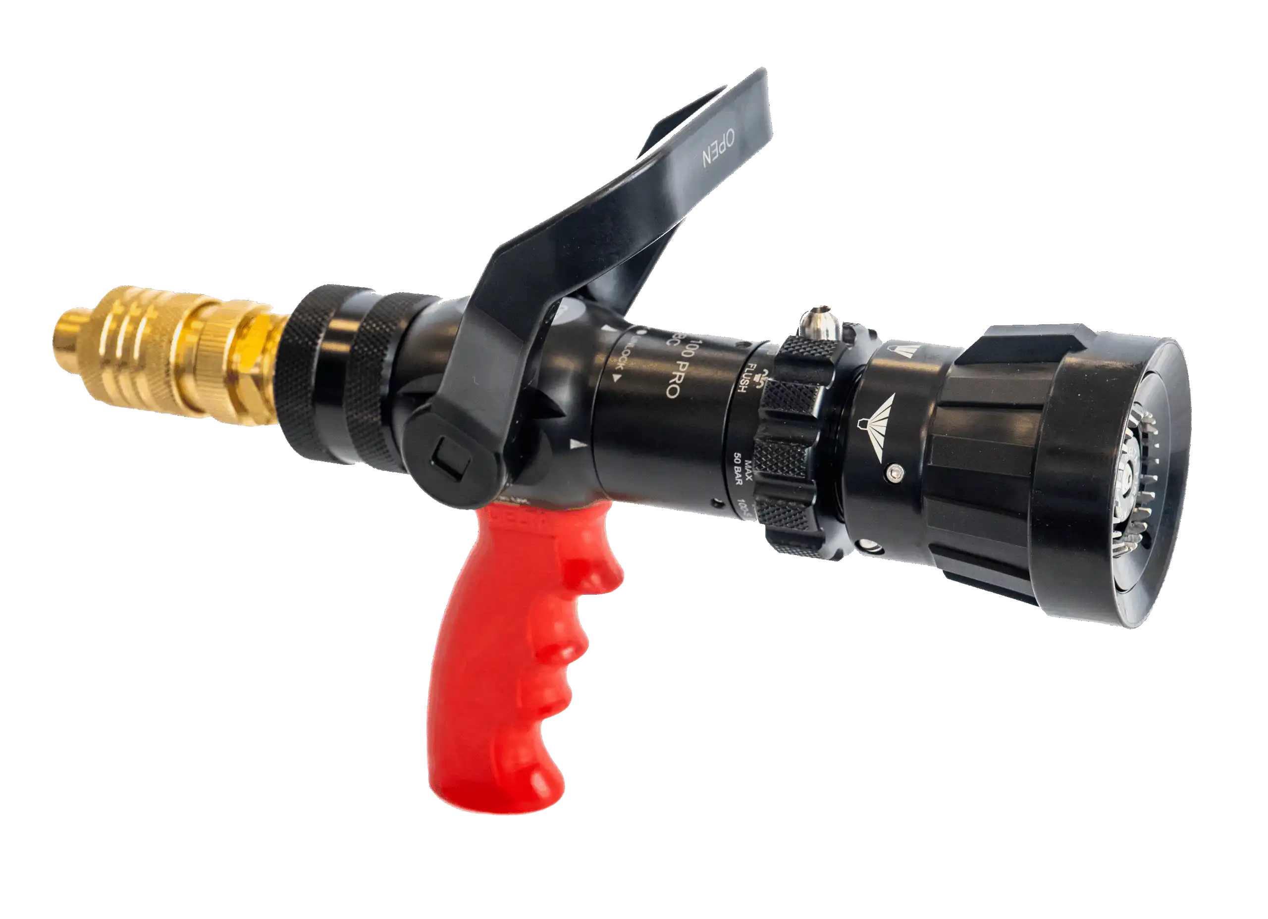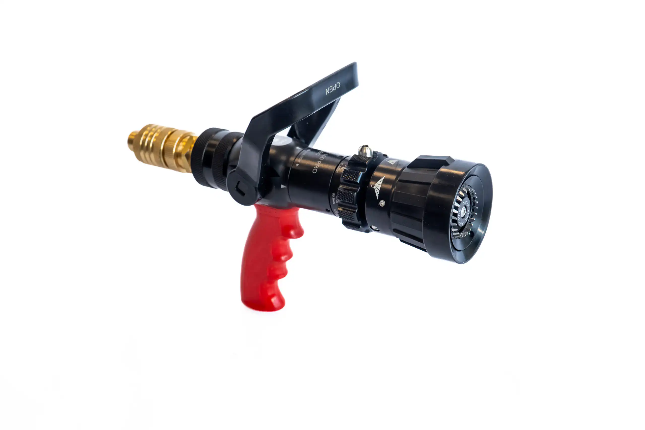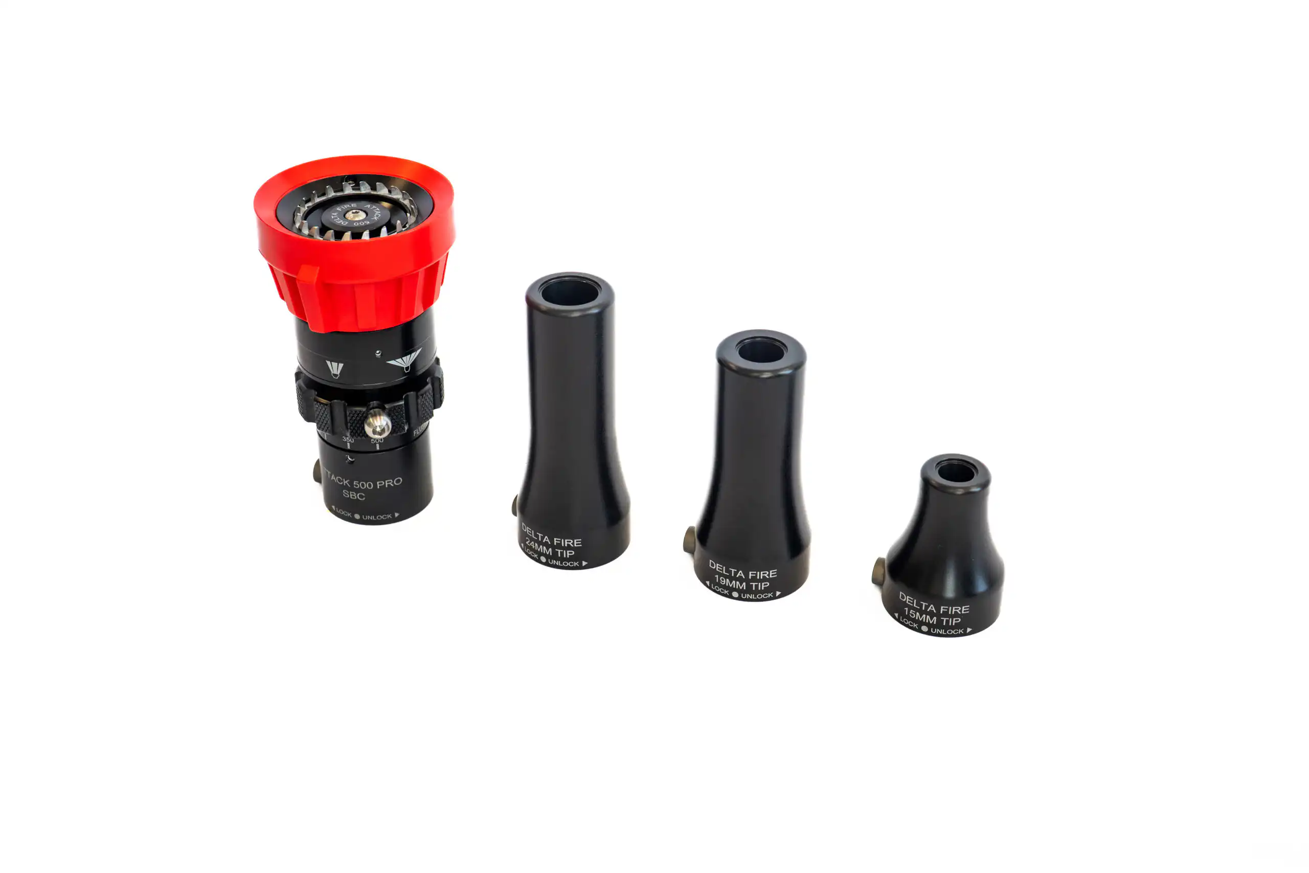 The Attack 100 SBC Pro is a professional front-line firefighting nozzle from Delta Fire, designed for precision, versatility, and durability. Part of the Attack Pro Series, it has undergone extensive testing with UK Fire and Rescue Services. The nozzle features a Smooth Bore Combination (SBC) connector allowing quick attachment of interchangeable heads for jet, spray, mist, fog, and foam patterns. Stainless steel turbine teeth produce fine water droplets for gas cooling and enhanced firefighter safety. Lightweight, compact, and ergonomically designed for use with gloves, it is ideal for fire and rescue teams, marine operators, and industrial response units.
