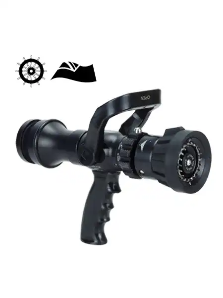 The Attack 500 Pro is a high-performance nozzle for low-pressure mainline hoses. Manufactured in the UK and approved to EN 15182-2 (Type 2 and 3) and MED standards, it combines a stainless-steel spinning turbine and profiled ball valve to deliver powerful jets and dense fog patterns. It is widely used by professional fire services, including London Fire Brigade.