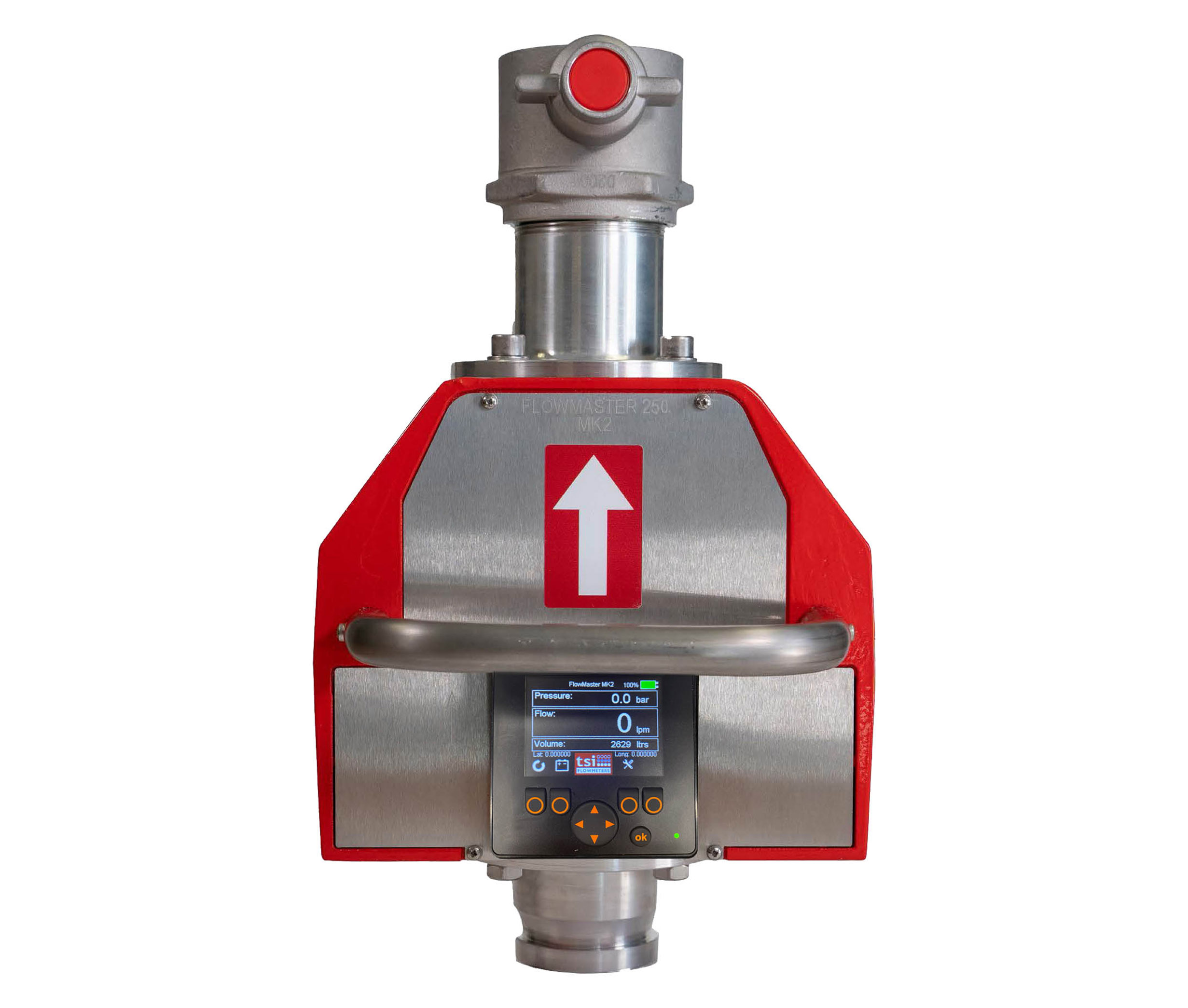 The Flowmaster 250 Mk II is a digital flowmeter used to evaluate hydrant and water-main capacity (pressure and flow), check for leaks or obstructions and test pumps and hoses. It uses an electromagnetic flow sensor to measure flows from 30 to 3,000 L/min with high accuracy (±15 L/min above 750 L/min and ±2 % below 750 L/min).