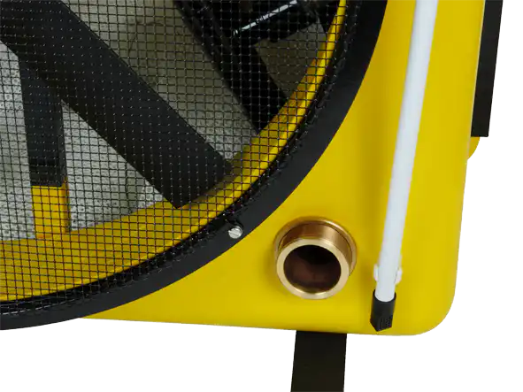 The Delta Excel High Expansion Foam Generator is a water‑turbine powered foam generator that produces very large volumes of high‑expansion foam quickly and efficiently. It has a built‑in foam induction system and simply requires a pressurised water supply and synthetic foam concentrate to operate. A water bypass system helps control the expansion rate and maintain performance even against back pressure. The unit is capable of ducting foam to heights of up to 15 metres and is supplied with expandable polythene for effective foam distribution. Manufactured in the UK with corrosion‑resistant materials and available in different colour options, it is suitable for use with all foam types including fluorine‑free foams and can be configured with additional features such as a smoke extraction capability.