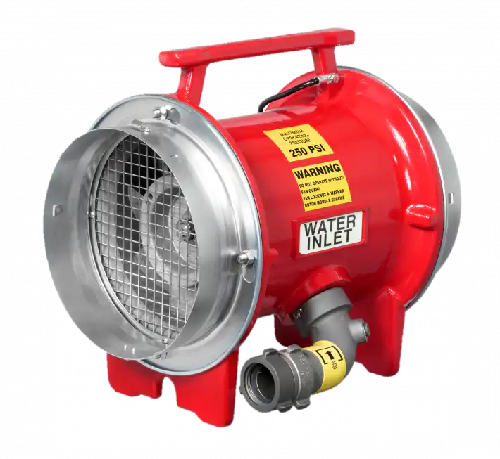 The WF20 uses the water pressure of a fire hose and patented turbine coupled to a highly efficient fan blade to generate high-velocity, high-pressure airflow. Manufactured in corrosion resistant materials the WF20 requires infrequent and simple maintenance.